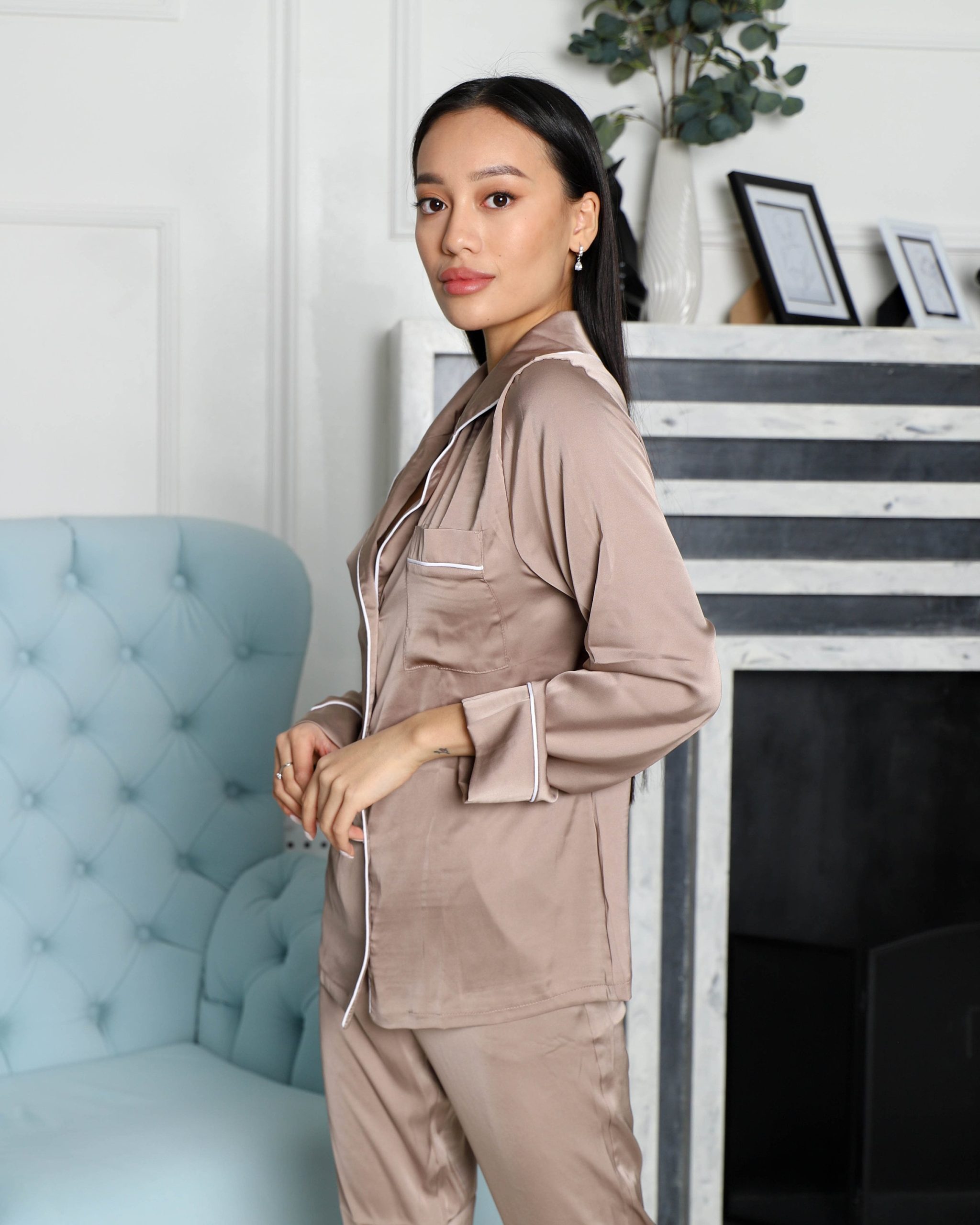 Beige Armani Silk Pajama Set: Elegant Women’S Loungewear
