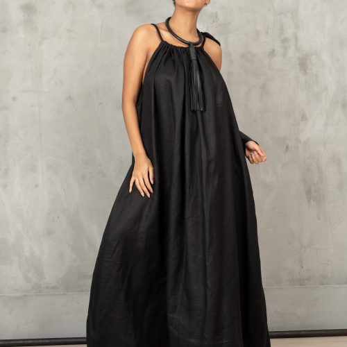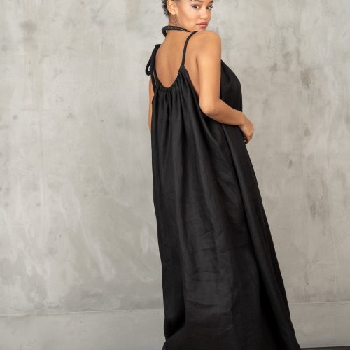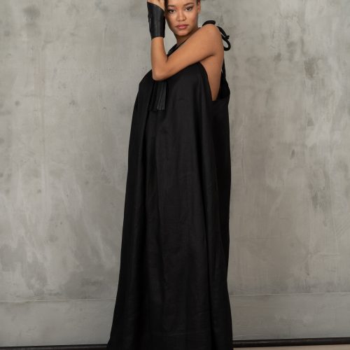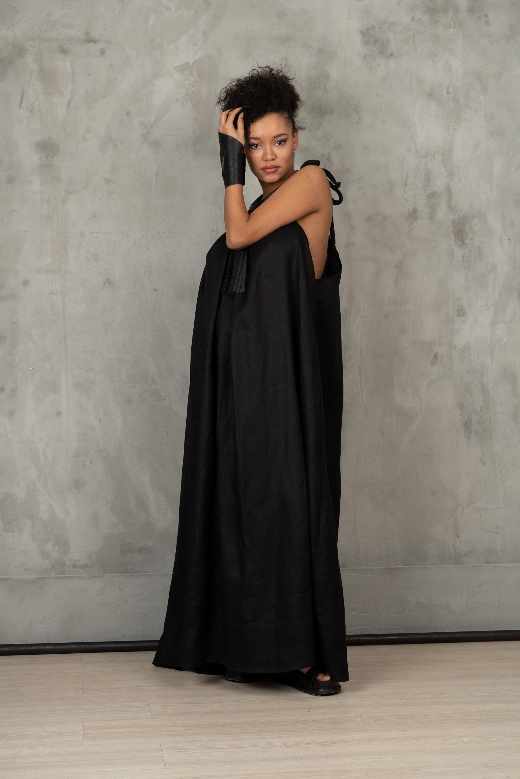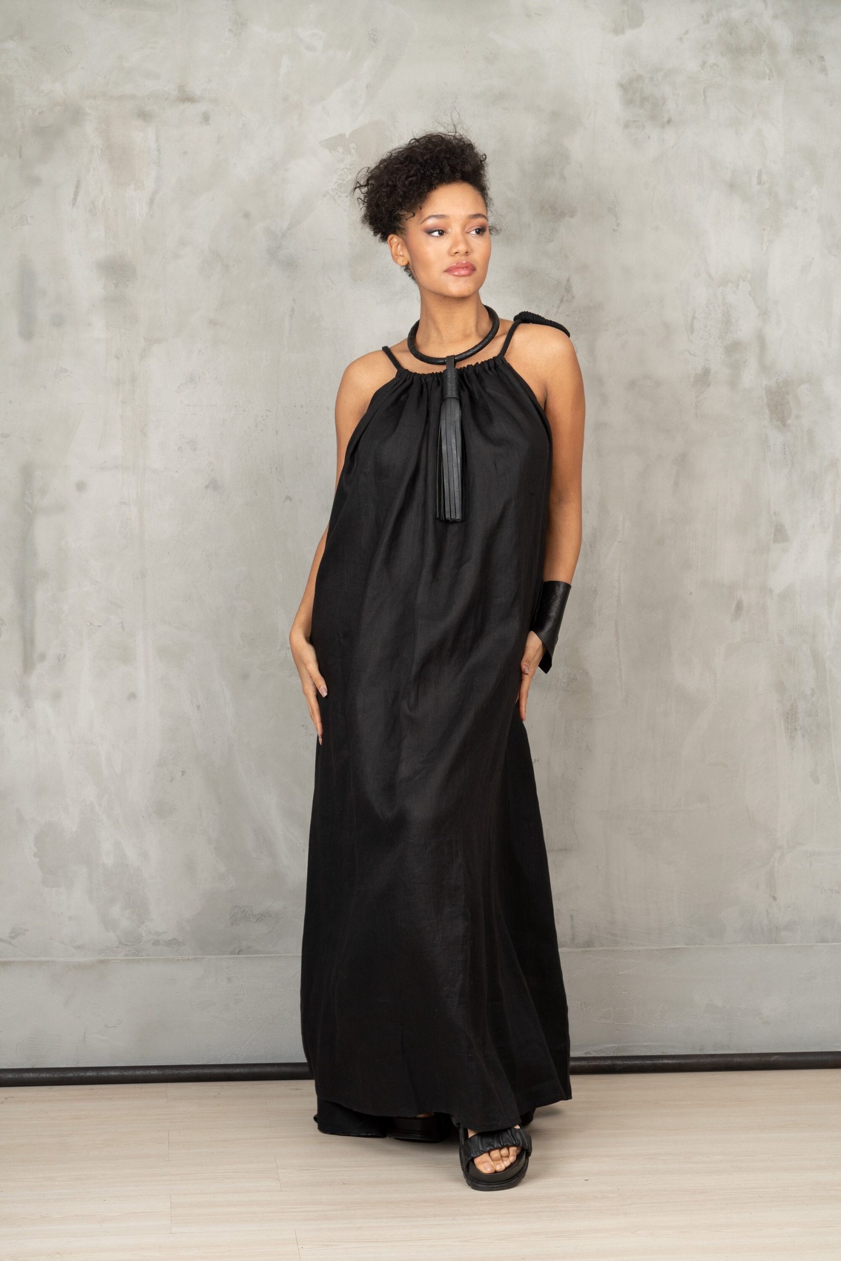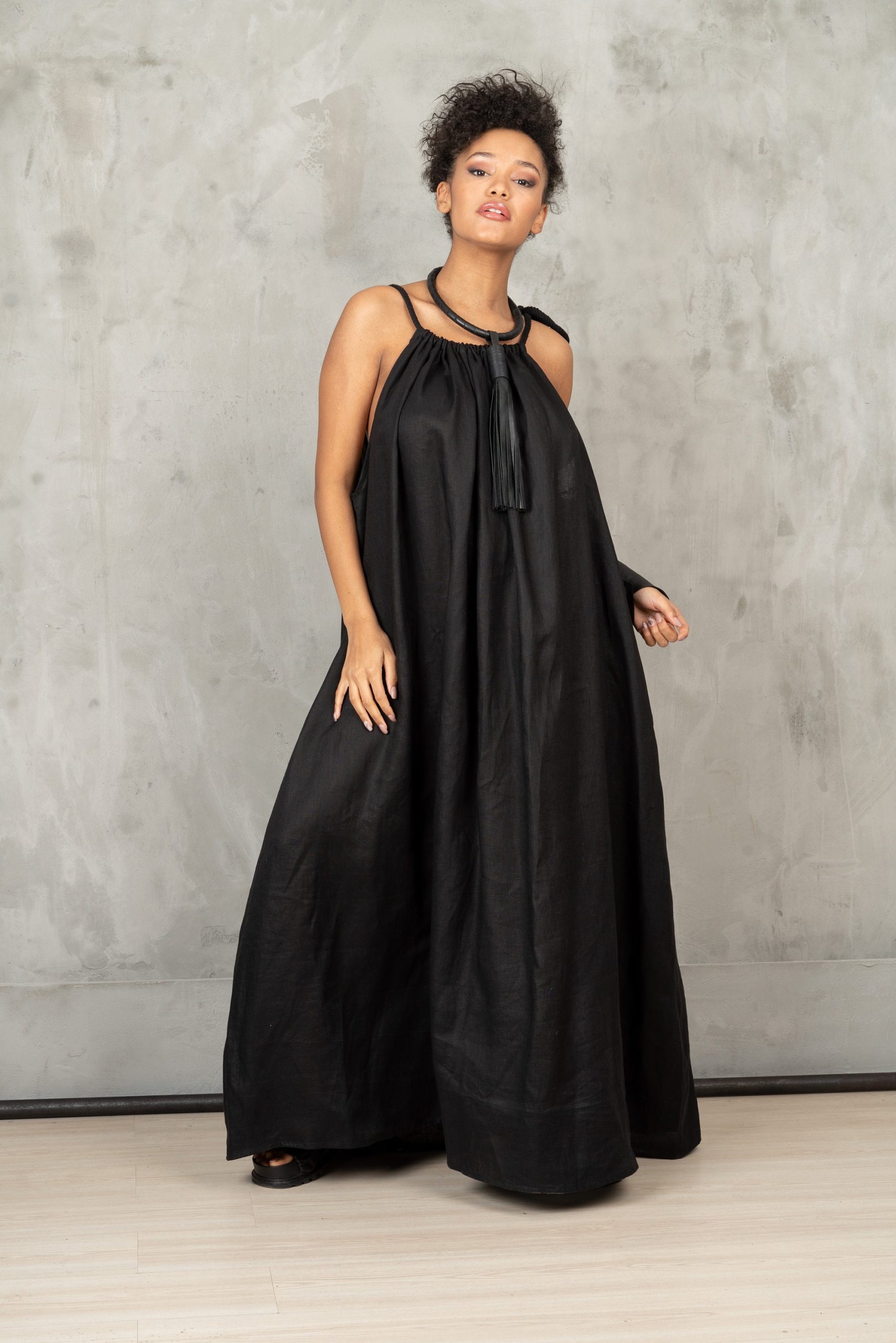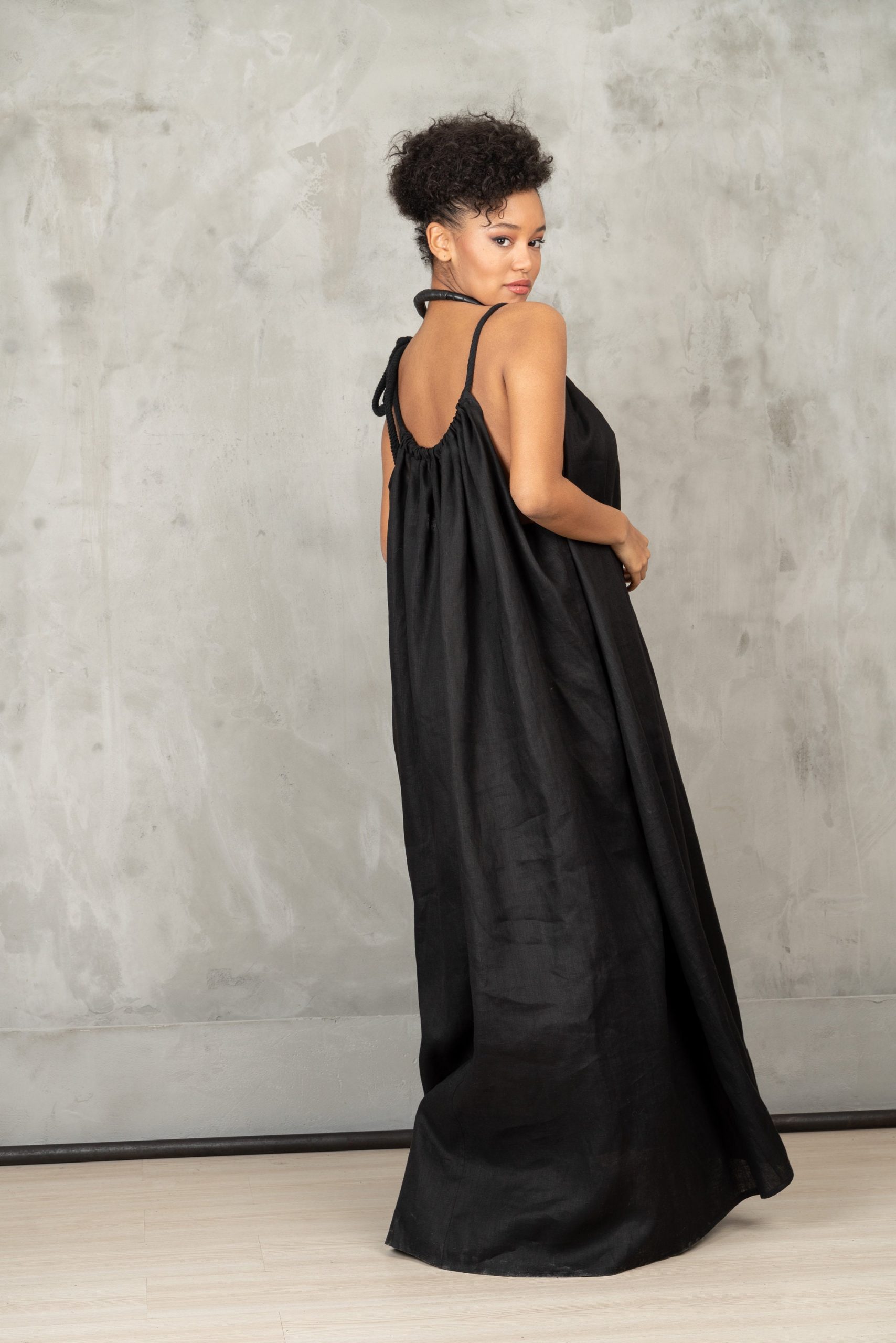 Black Linen Maxi Dress: Oversized Kaftan Summer Dress