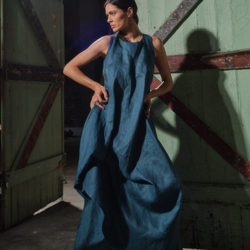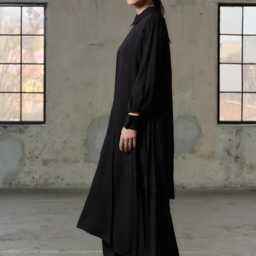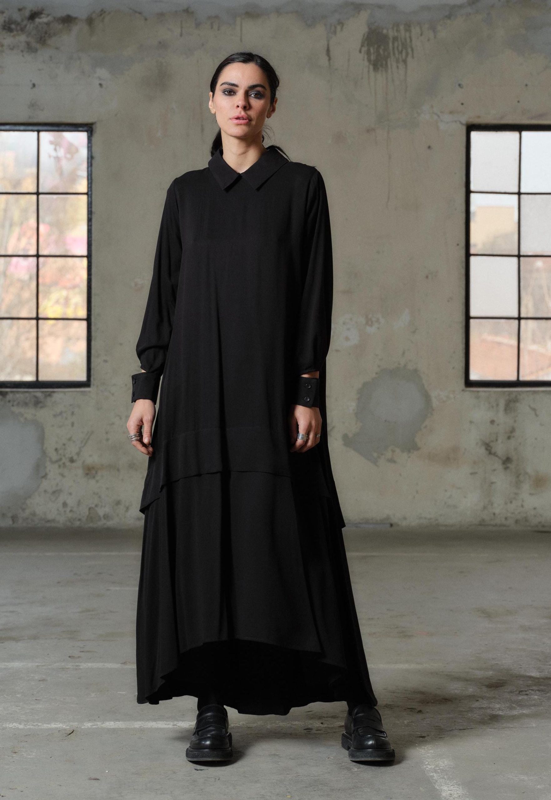 Black Viscose Maxi Dress Avant Garde Asymmetrical Shirt