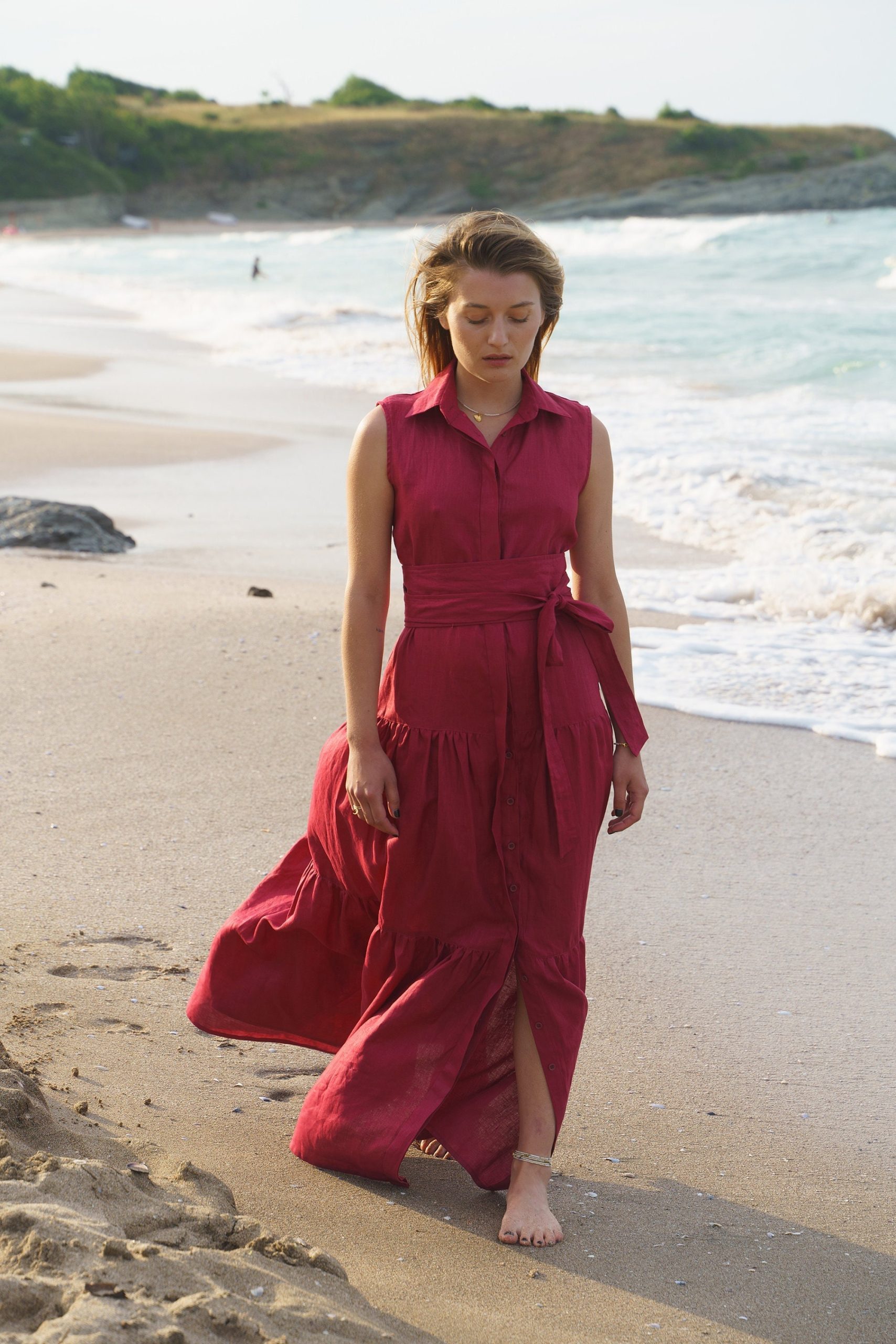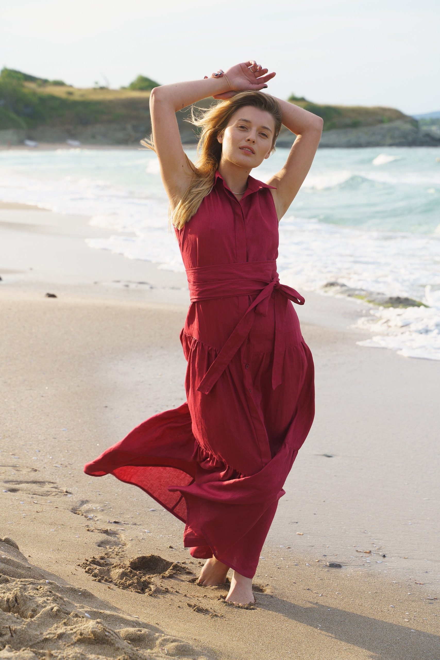 The most versatile long linen dress is finally here! Crafted in beautiful burgundy color, this summer dress is designed to boost you mood and make you the queen of the party.