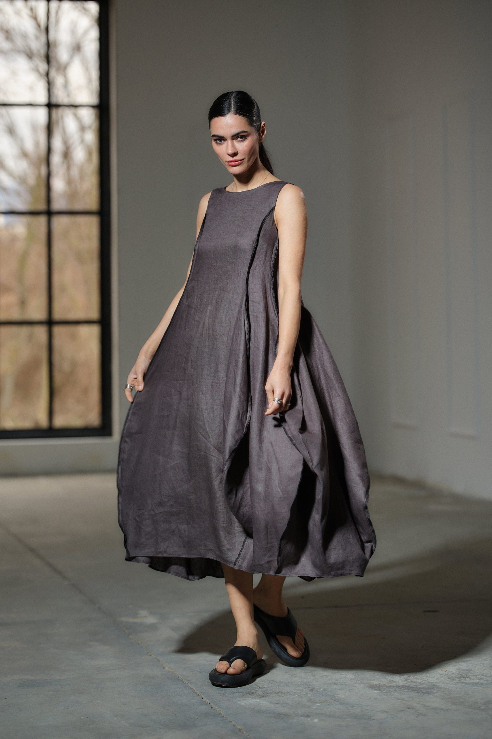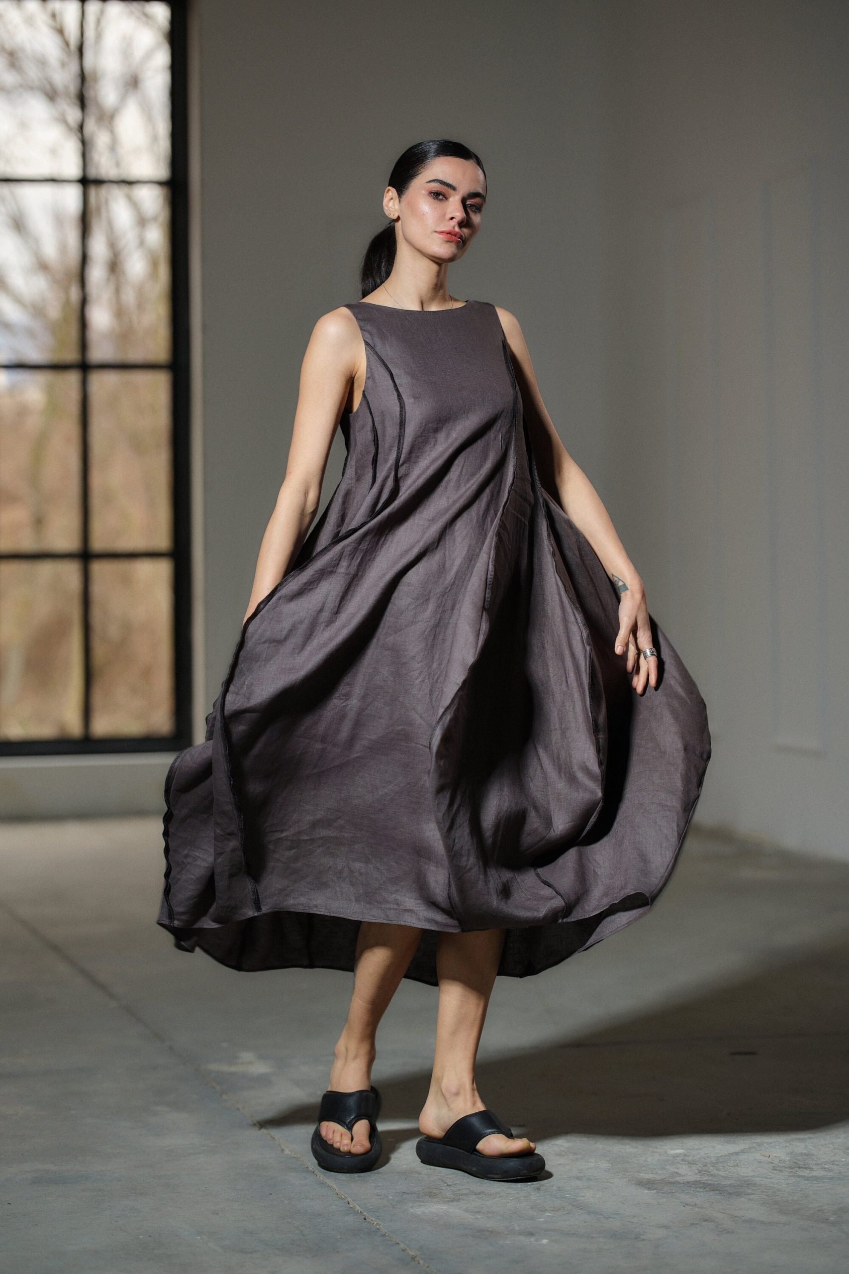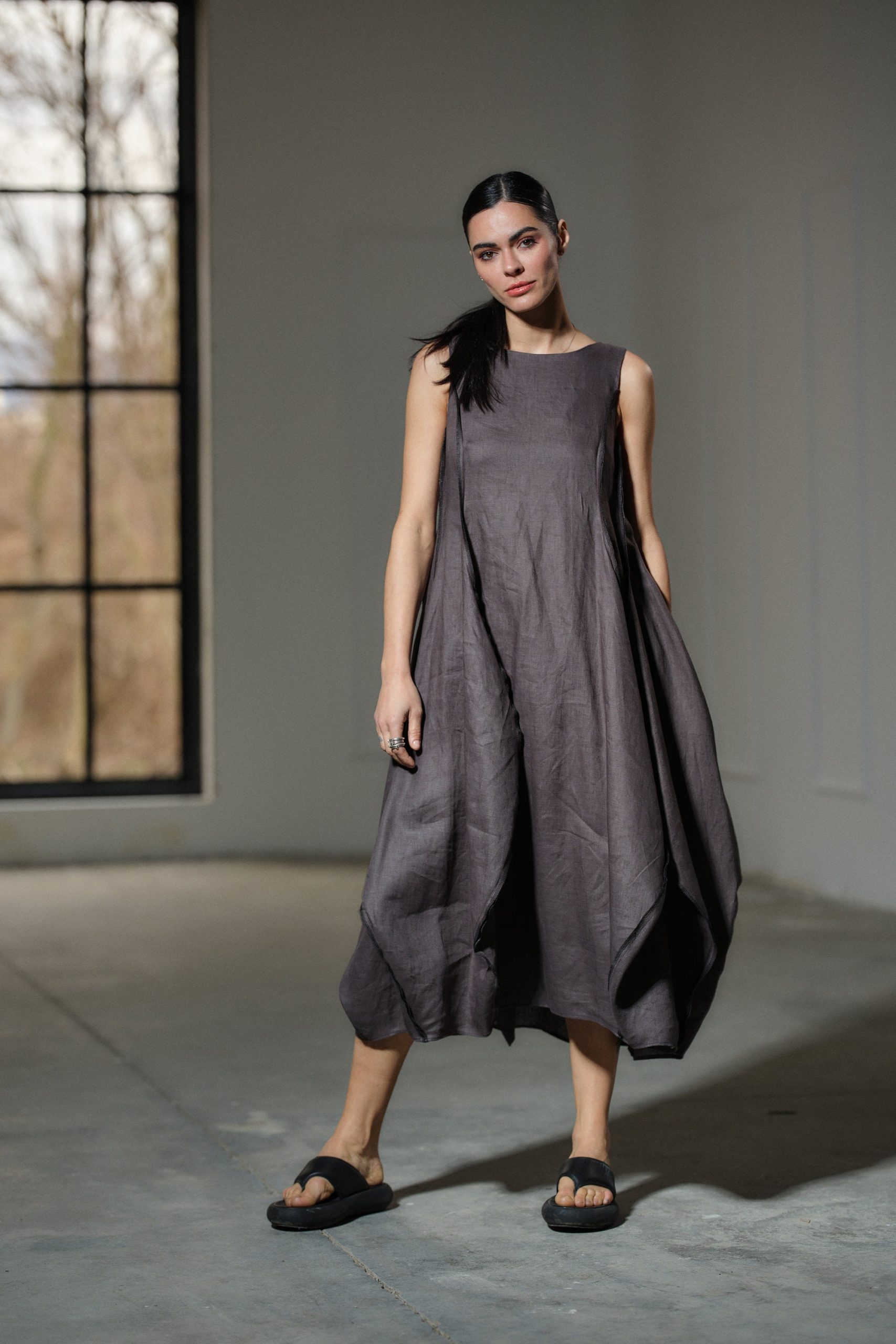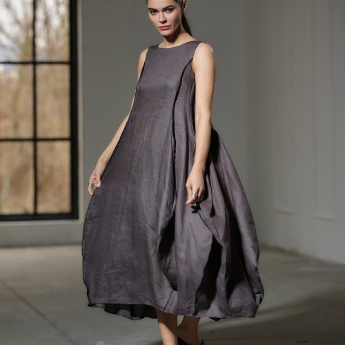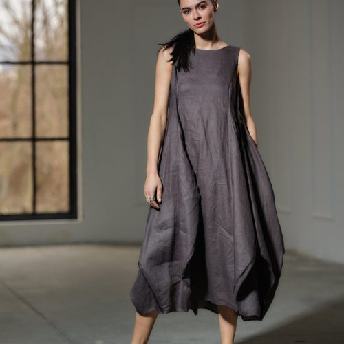 Step into the realm of avant-garde elegance with our captivating Asymmetrical Linen Dress, a true masterpiece handcrafted from the finest pure linen fabric. Inspired by the fluidity and beauty of nature, this dress embodies a contemporary design that seamlessly blends artistry with wearability.