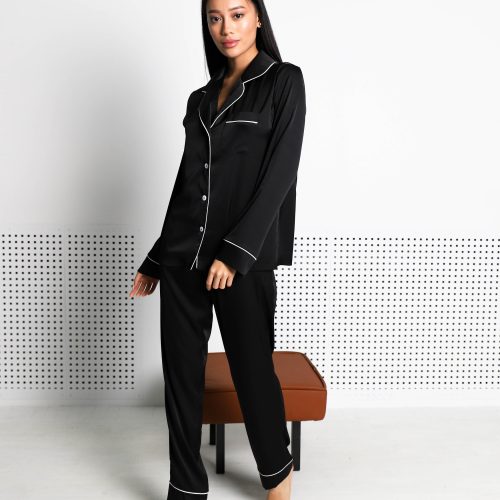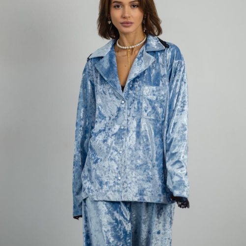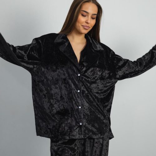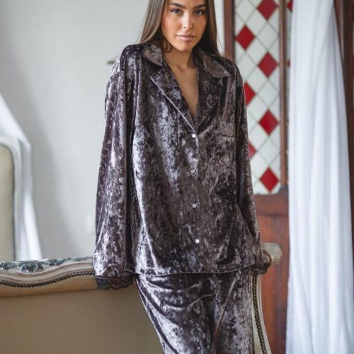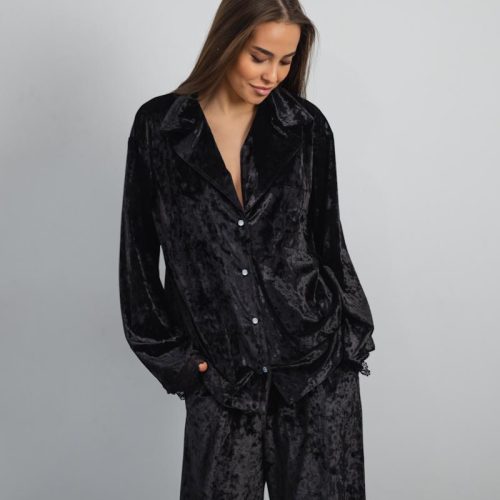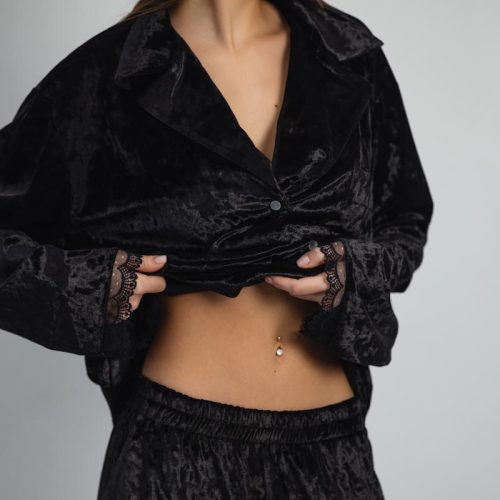 Pajamas Marble Velor + Lace Black