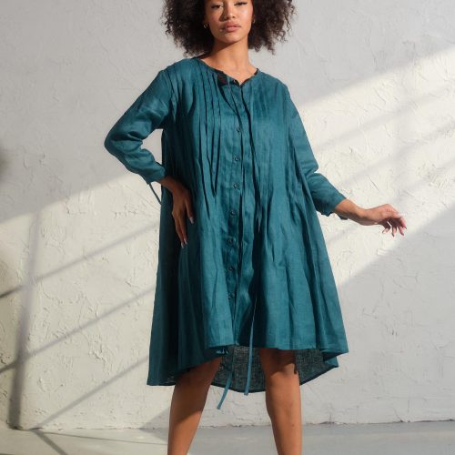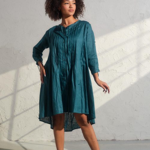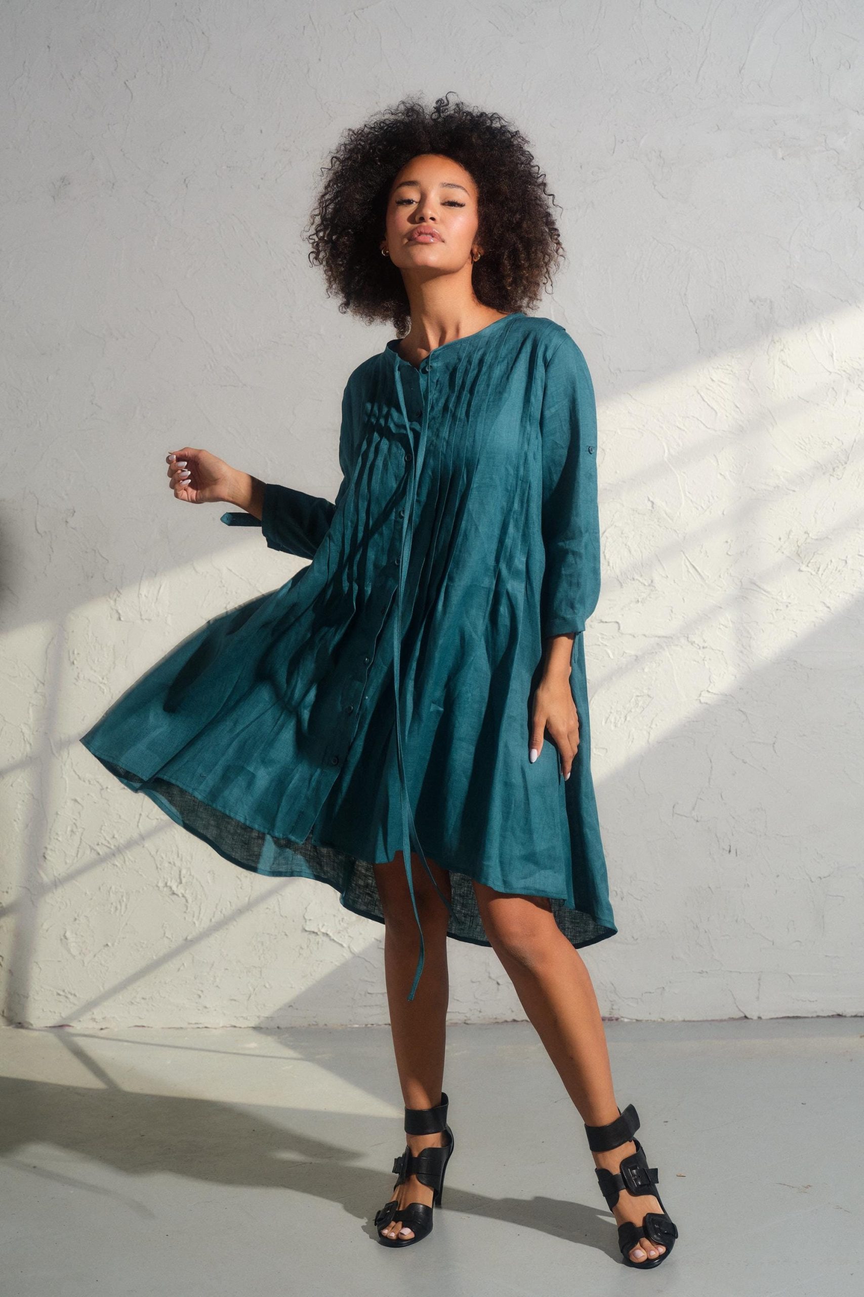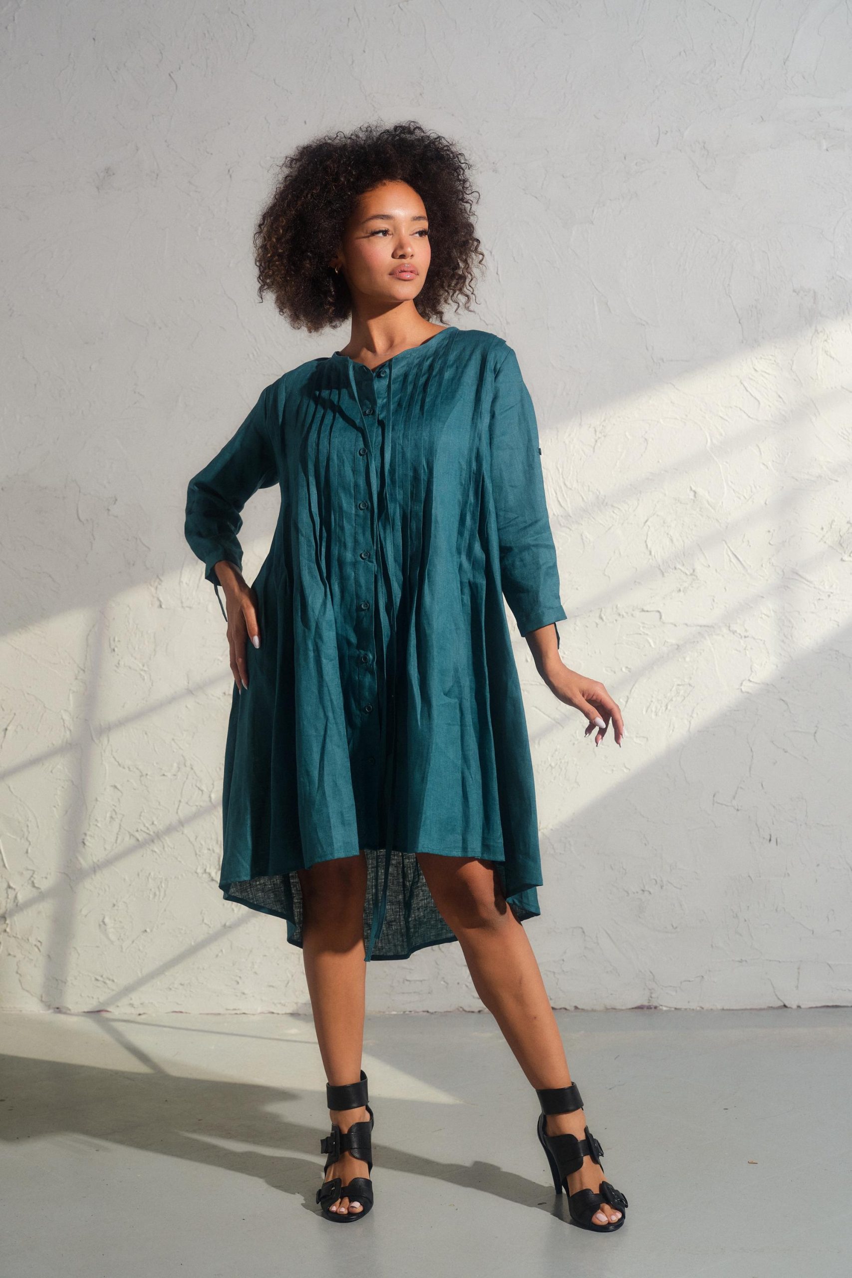 Embrace the spirit of the free-spirited woman and make a bold statement with our Asymmetrical Linen Dress. Consult our size chart to discover your ideal fit, and let your inner creativity soar with each wear. (Model wears size M)