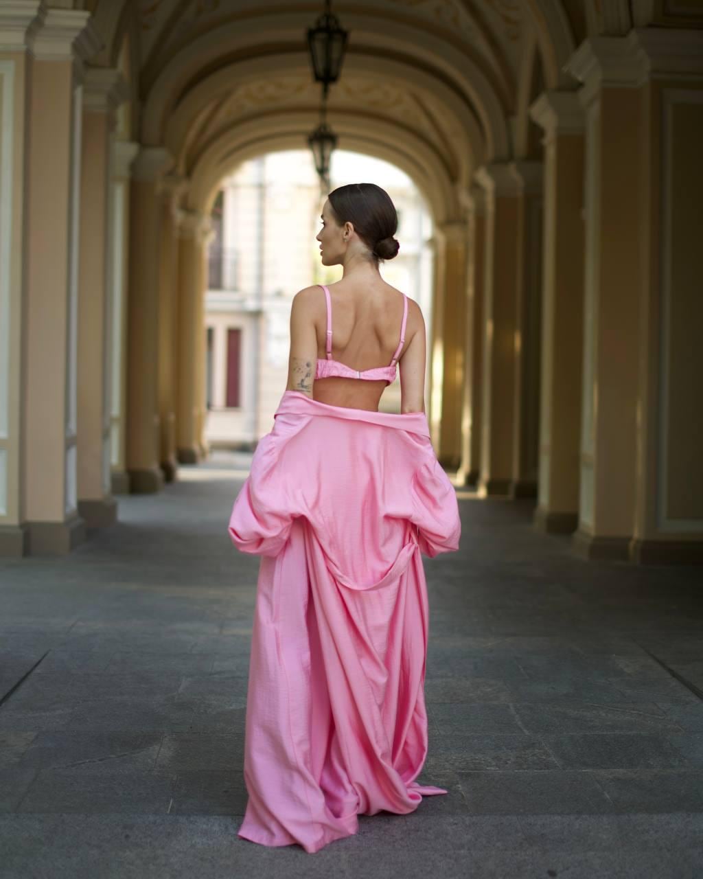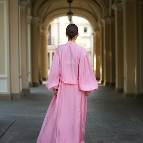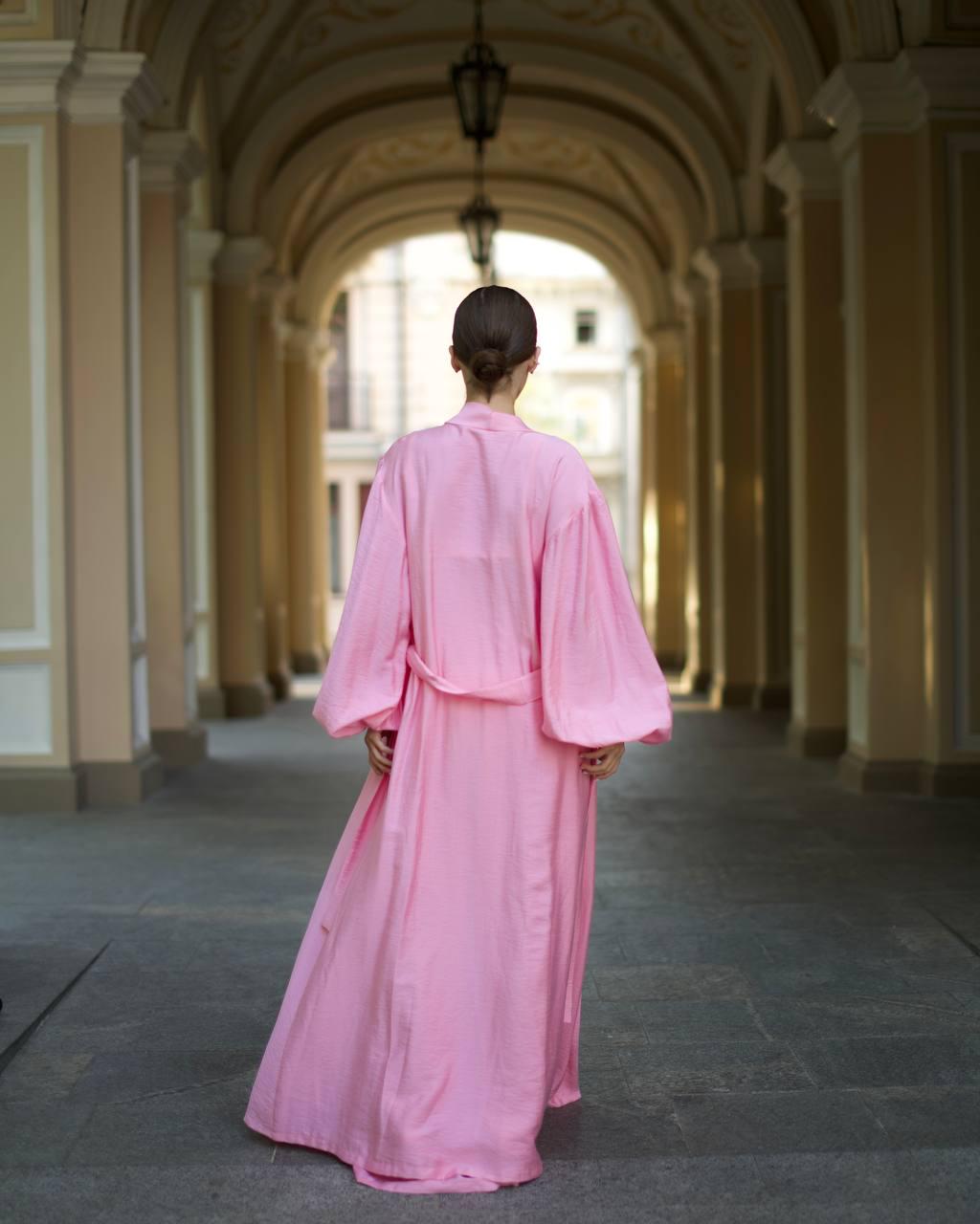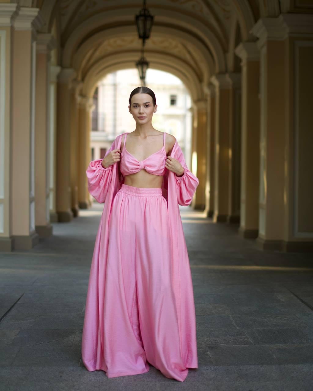 Three Piece Pajama Set Polished Linen (Bra+Robe+Pants) Pink