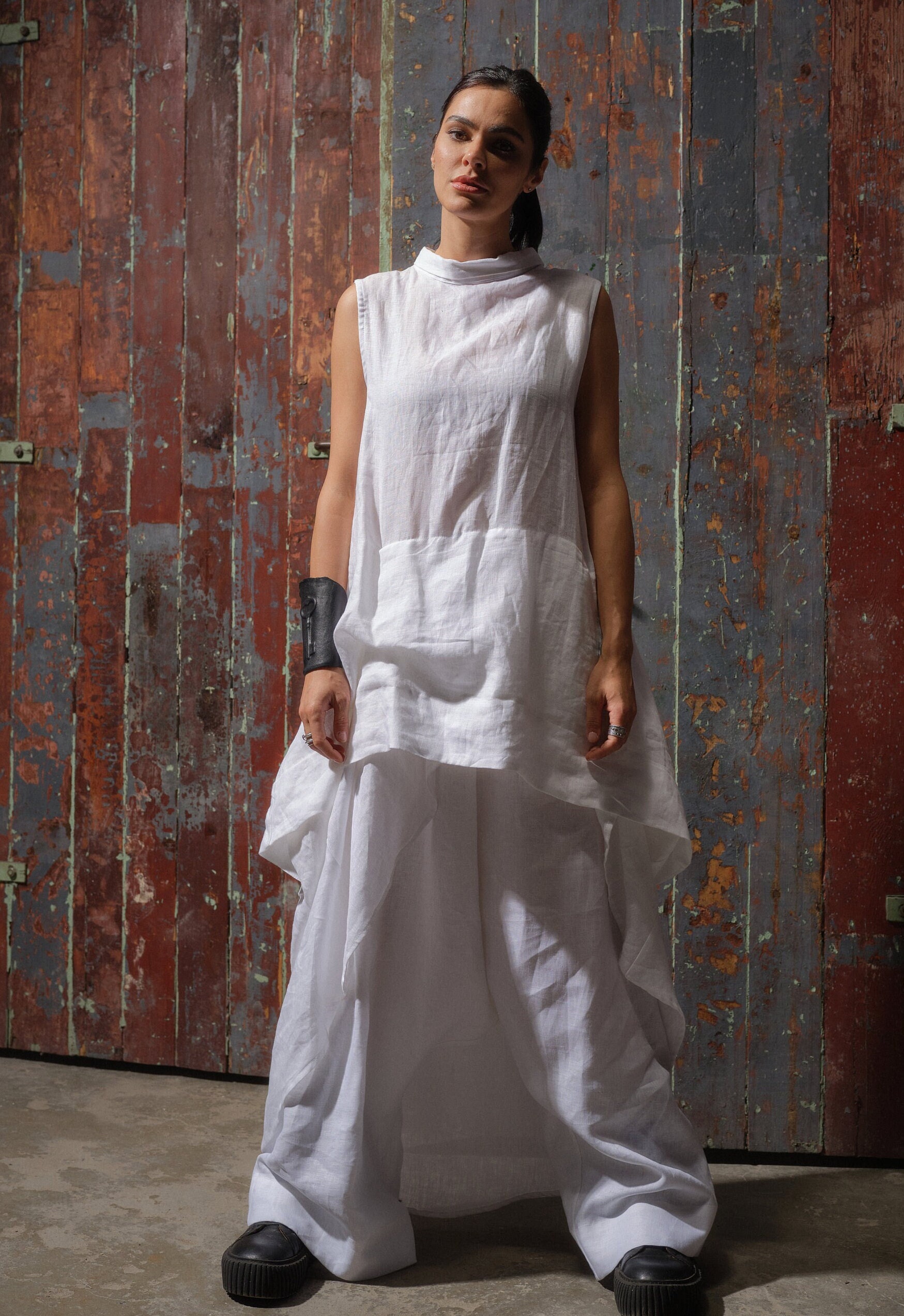 Summer linen dress linen clothing, White linen dress , Kaftan dress Avant garde dress