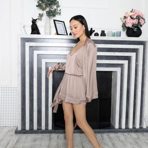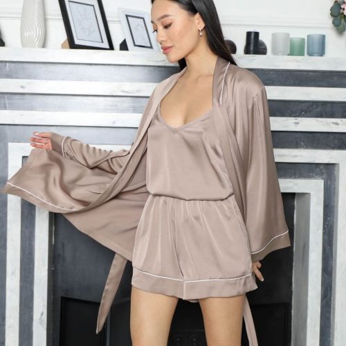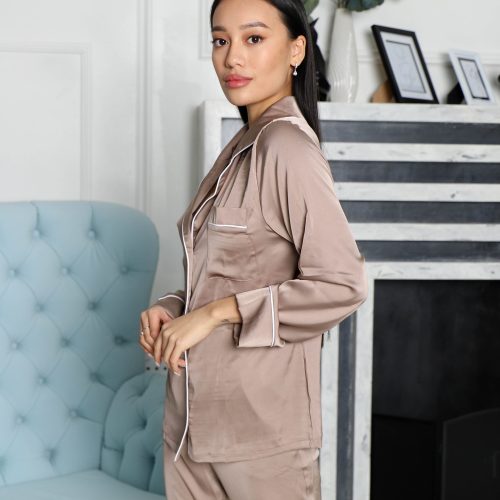 Beige Silk Pajama Set Women’S Loungewear Bridesmaid Gift
