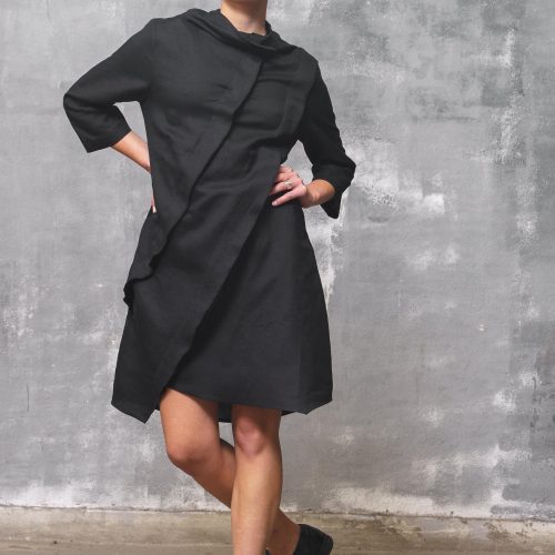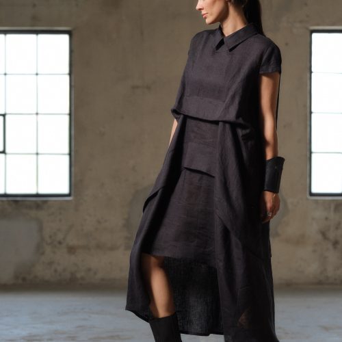 Asymmetrical Black Linen Dress: Steampunk Avant Garde Clothing