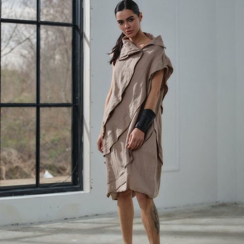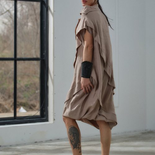 Avant Garde Linen Dress Asymmetrical Beige Boho Kaftan